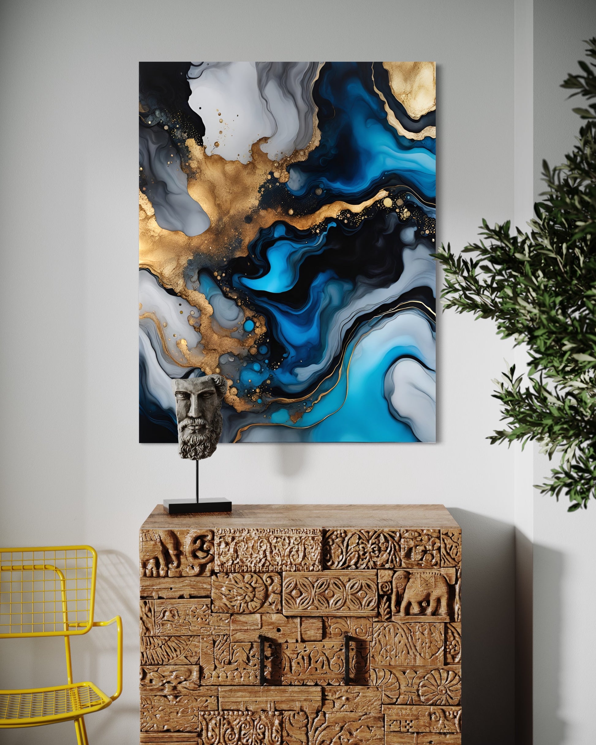 - pop art canvas obraz na vysoce kvalitním plátně v zlato modré kombinaci