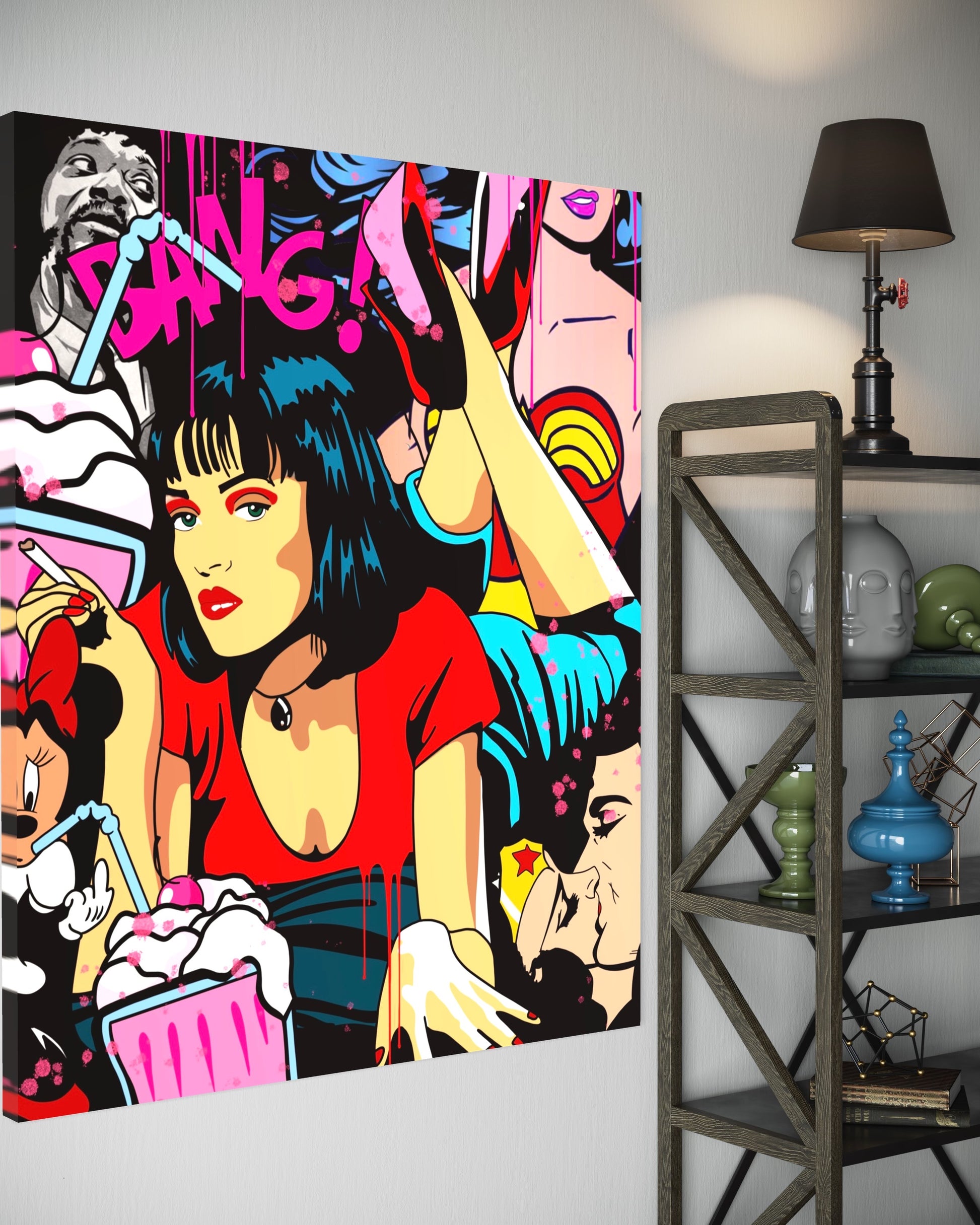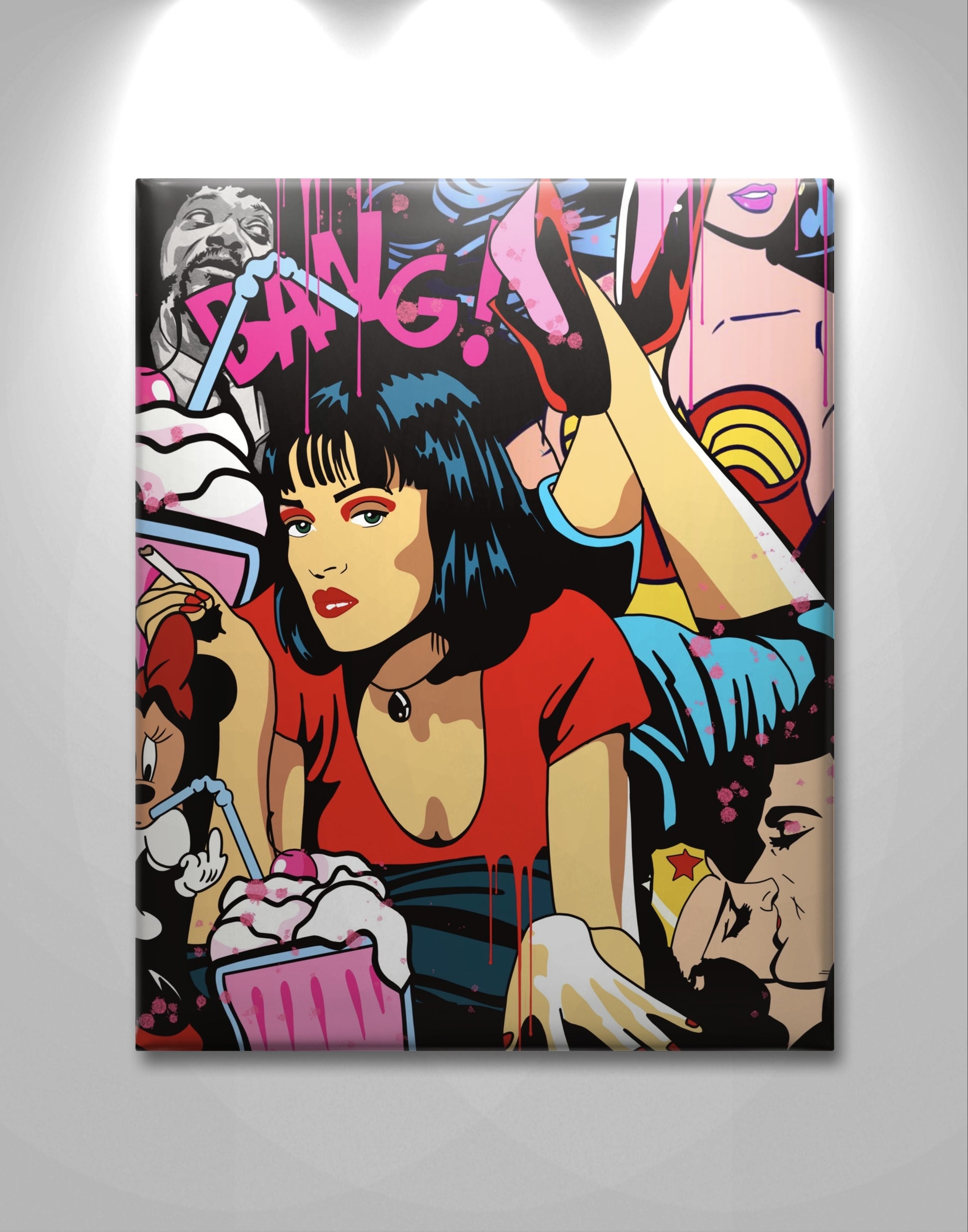 - pop art canvas painting with Mia Pulp Fiction motif