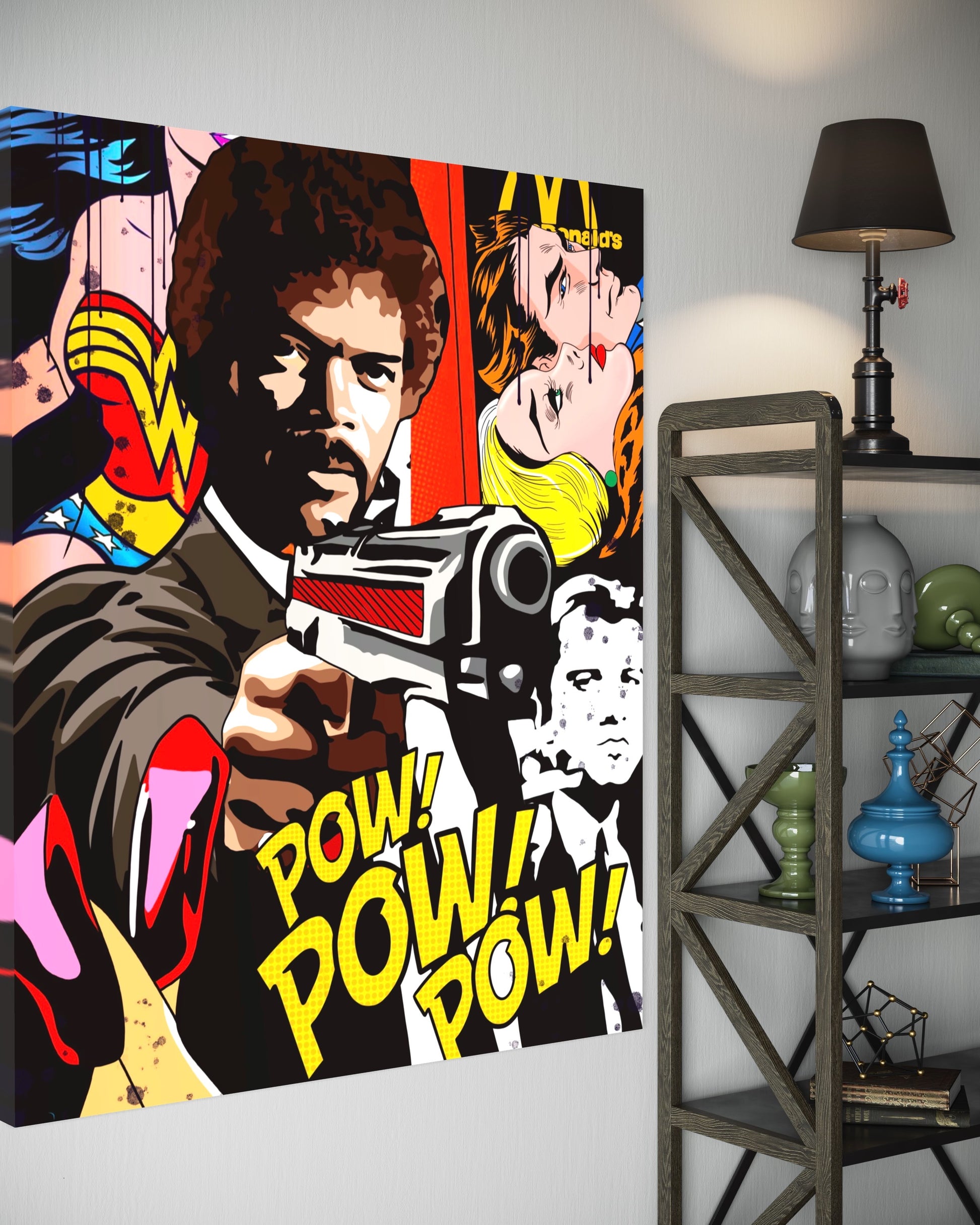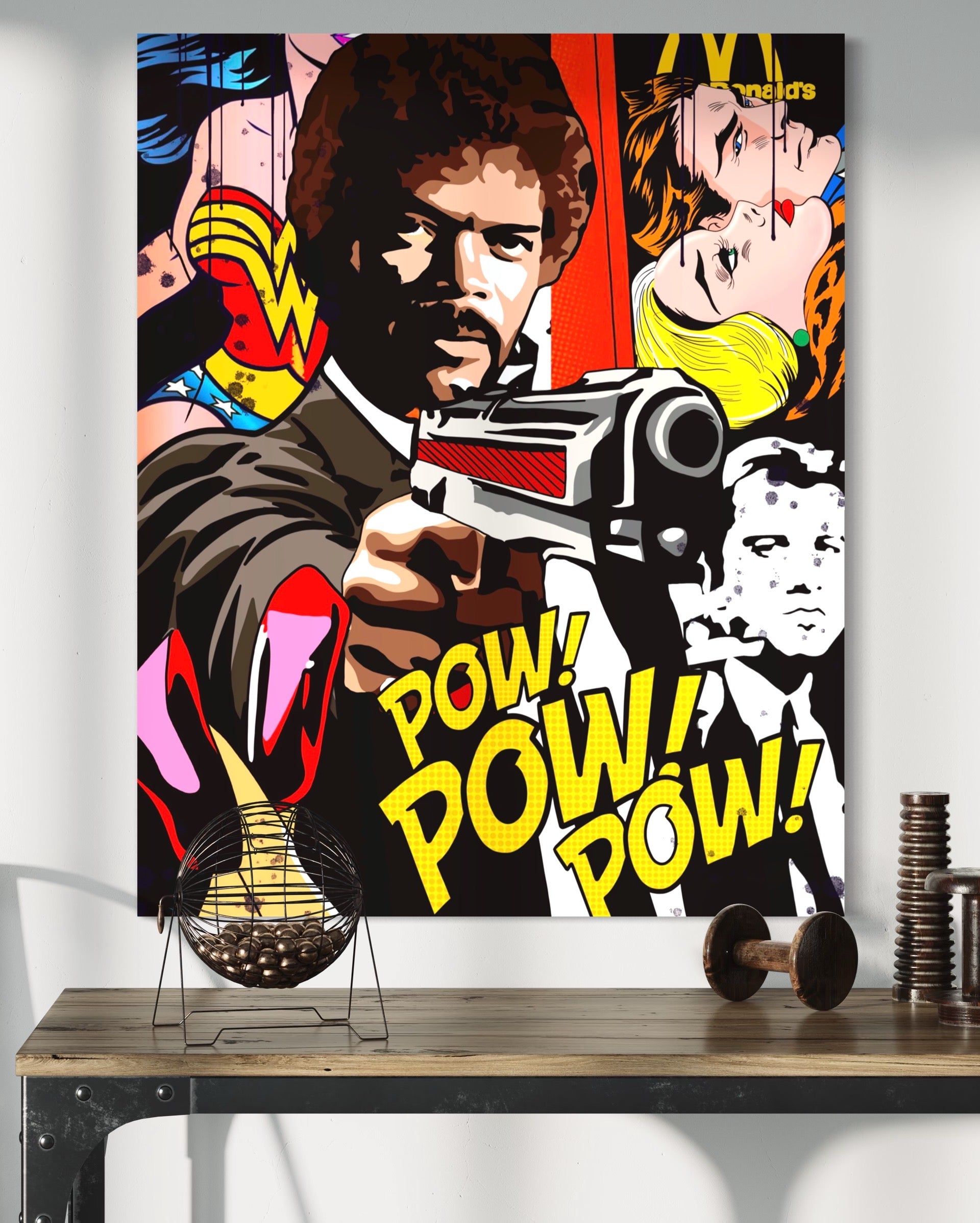- pop art canvas painting with Jules Pulp Fiction motif