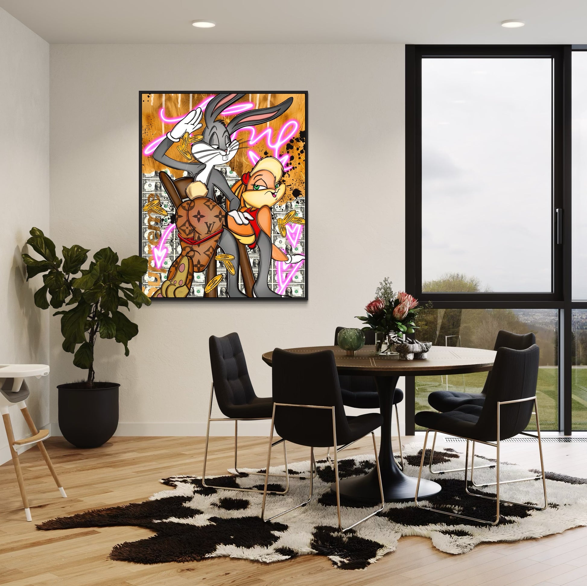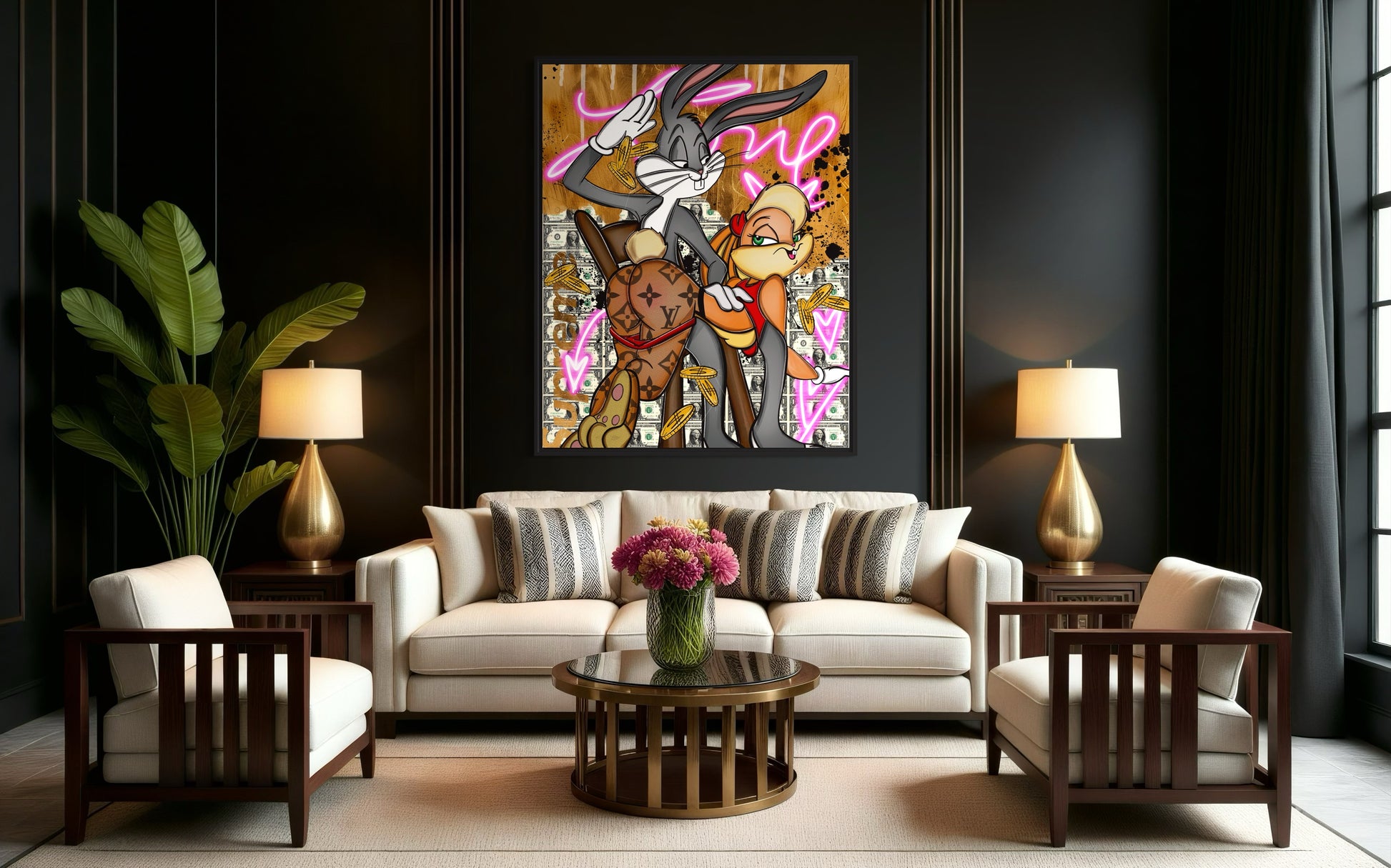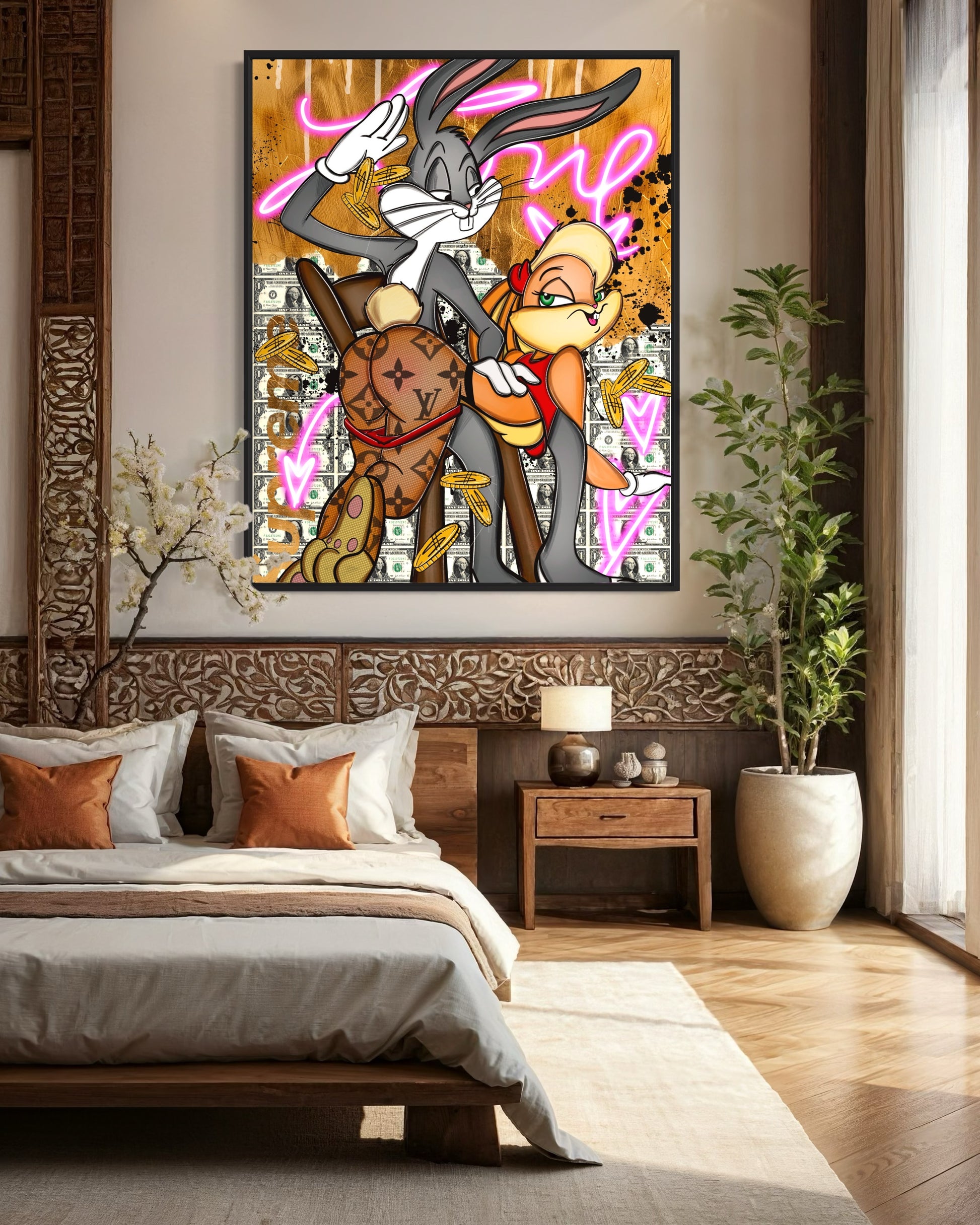 - une peinture sur toile avec le motif du célèbre portrait de Mona Lisa dans un design moderne