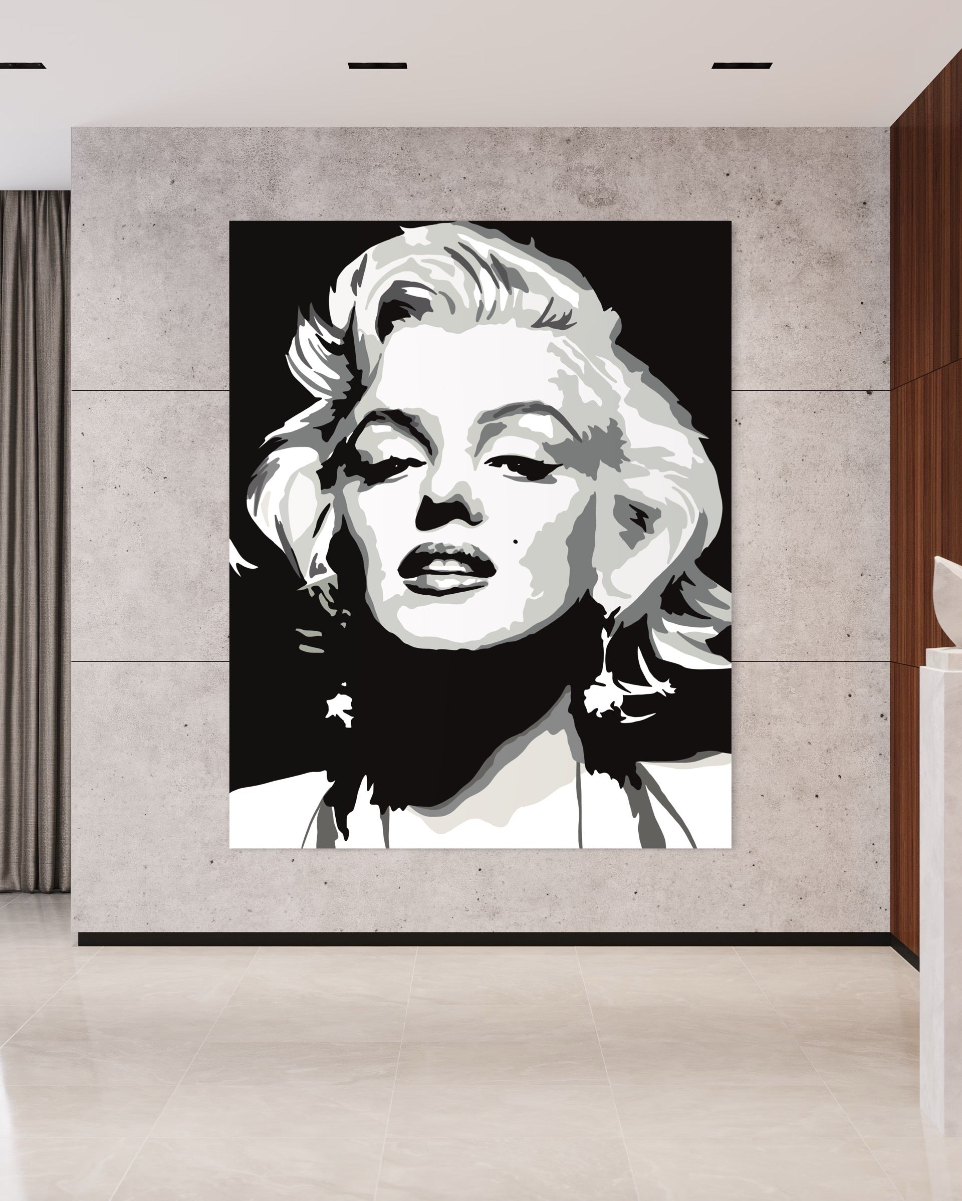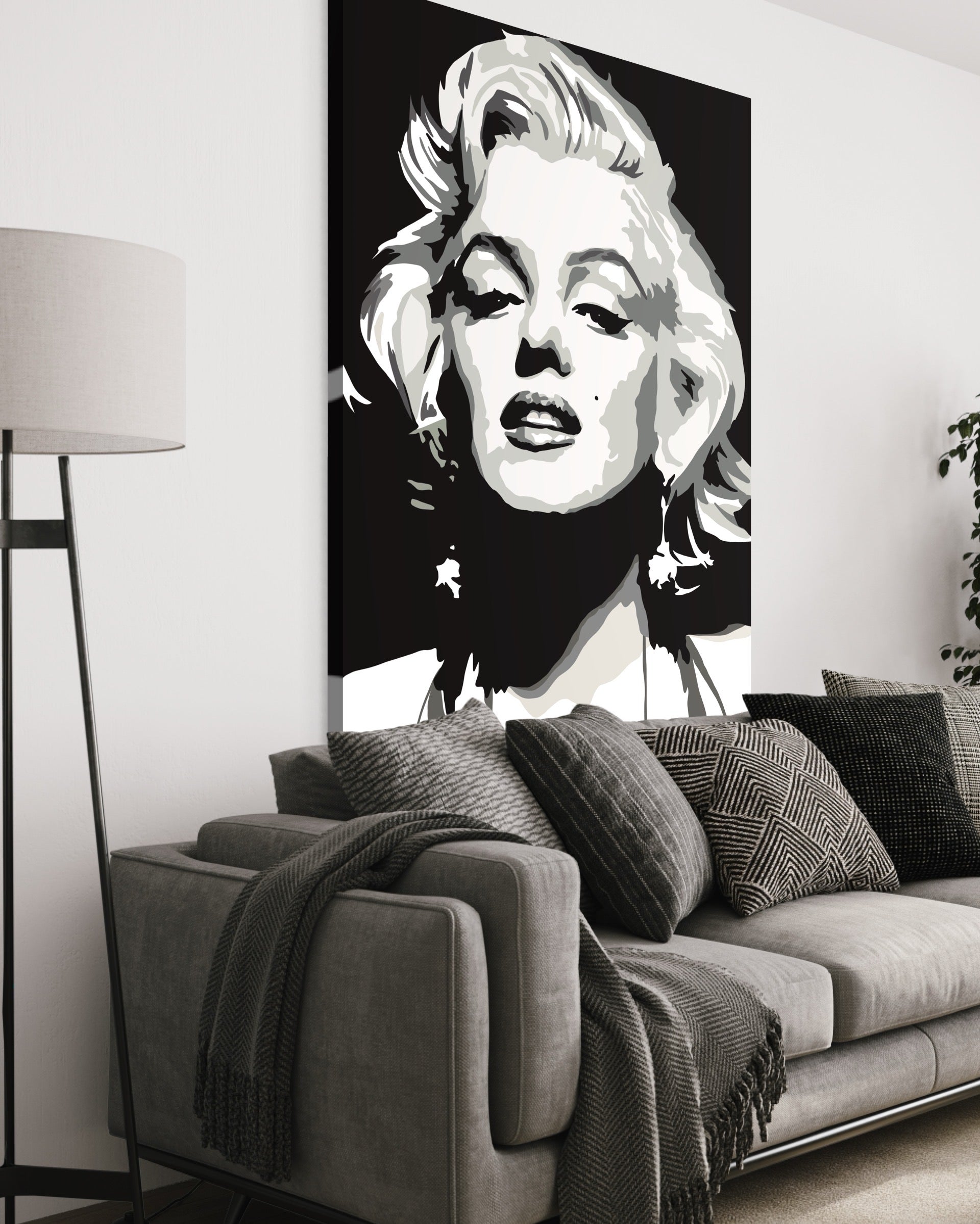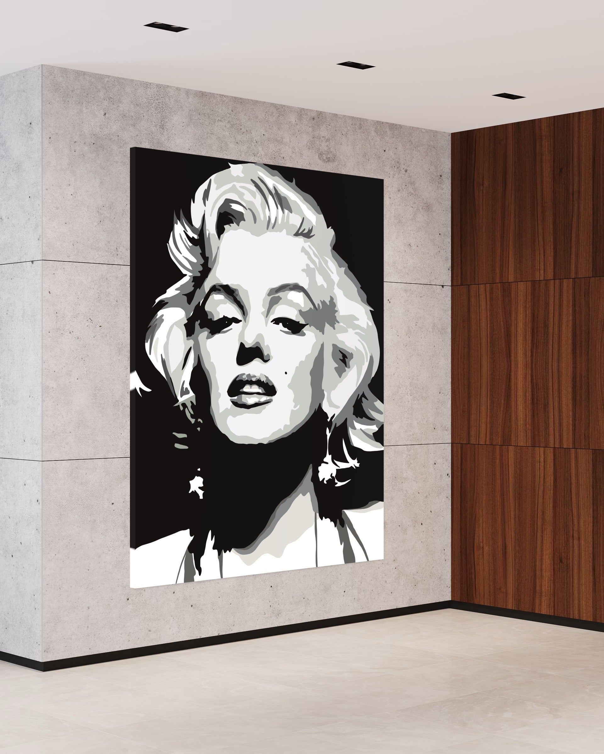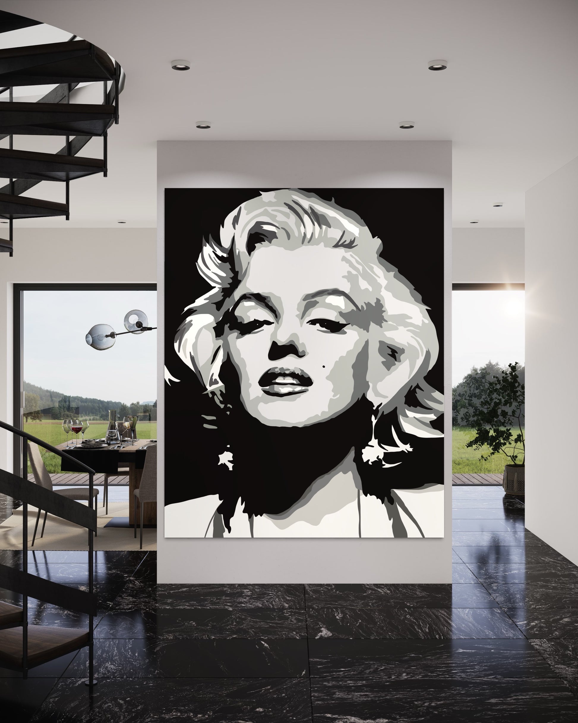 - une peinture sur toile pop art dans une combinaison de noir et blanc et l'emblématique Marilyn Monroe