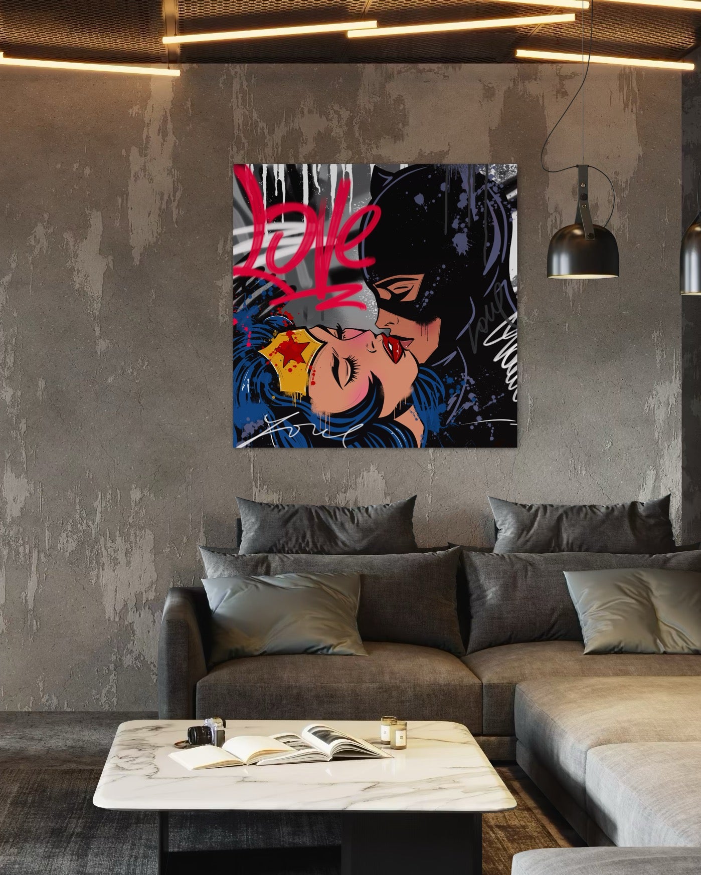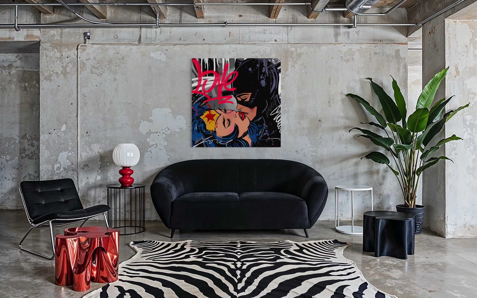 - une peinture sur toile avec le motif du célèbre portrait de Mona Lisa dans un design moderne