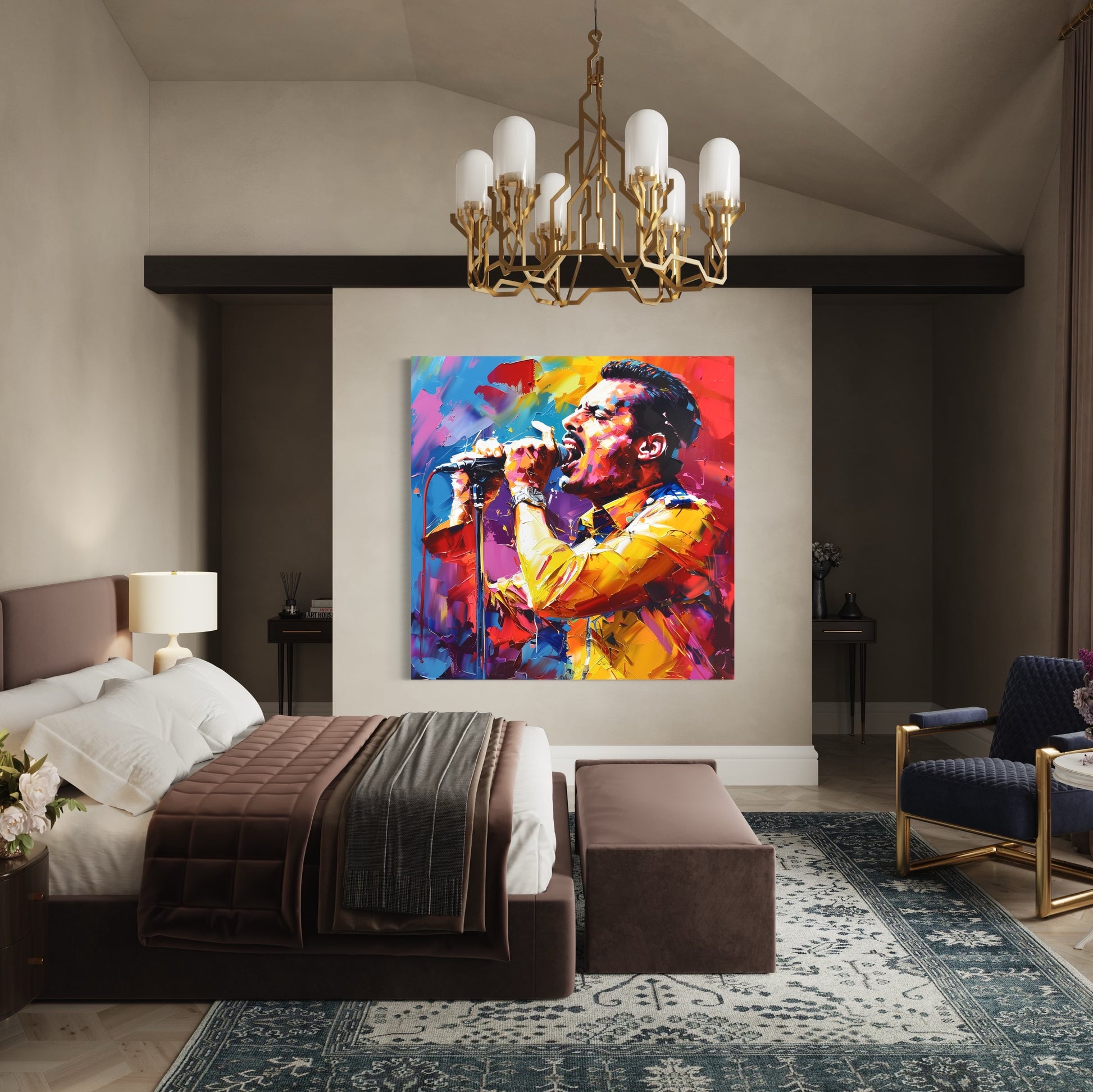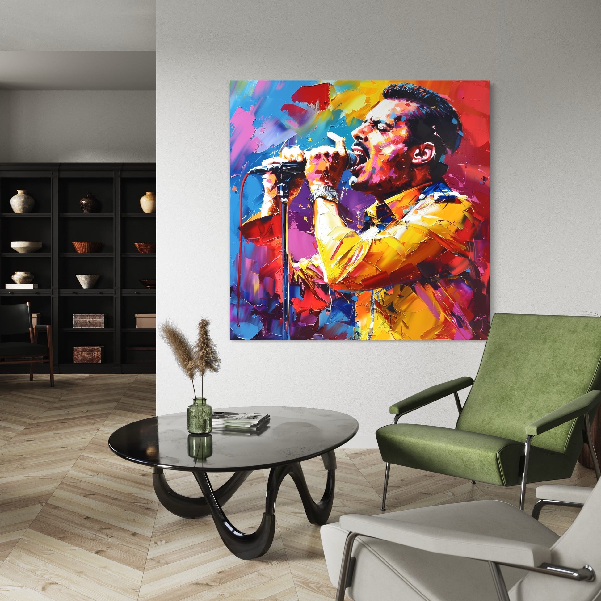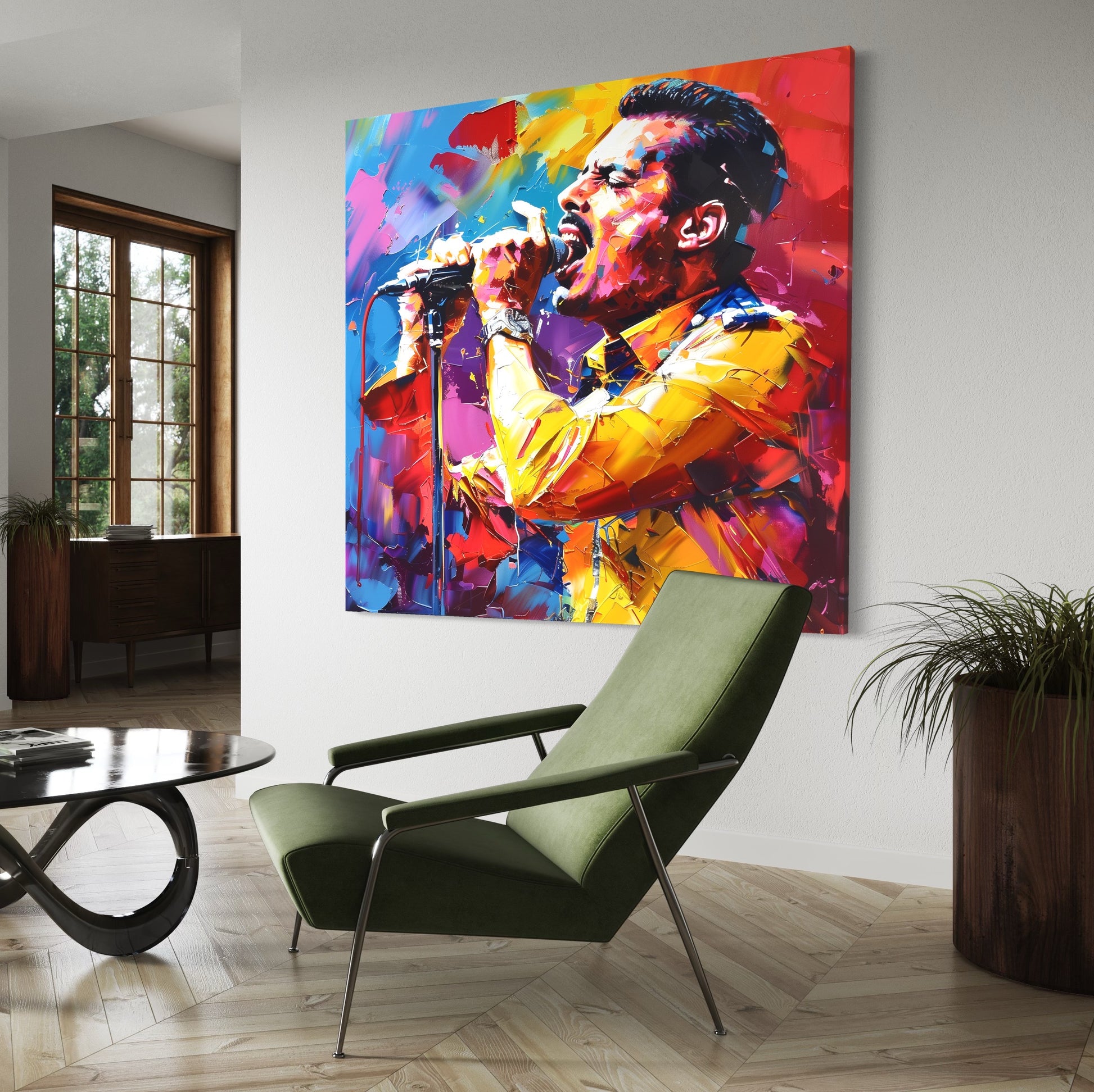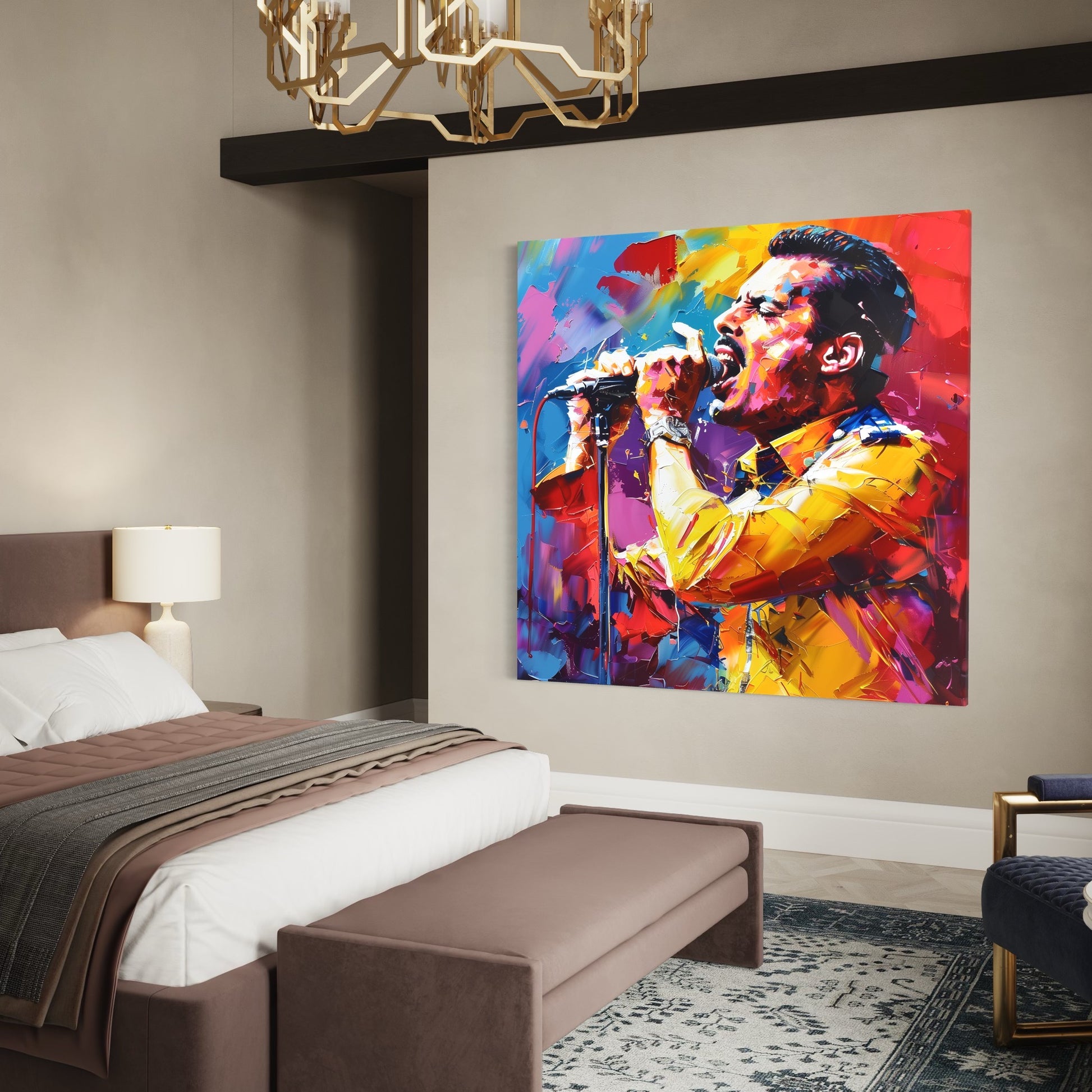 Jeden z nejslavnějších zpěváků všech dob Freddie Mercury v pop art podání na plátně.